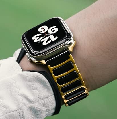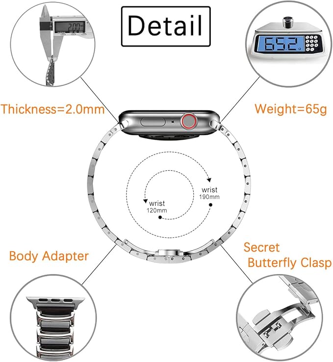 【素材】-真ん中の丸みを帯びた湾曲したセラミックリンク+316Lステンレス鋼で作られたこのバンド。セラミックの各部分は、経験豊富な職人によってゆっくりと磨かれました。ラグジュアリー、高貴、エレガンスなスタイルで、スマートウォッチをジュエリーのように見せます。