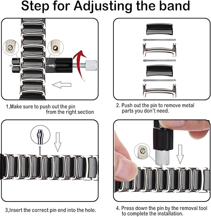 【ユニークなデザイン】-ストラップのセラミックは、最大厚さが約3mmの丸いビーズデザインで、ステンレス鋼の厚さはわずか2mmです。非常に軽く着用できます。また、すべてのリンクが取り外し可能であるため、手首の肌に非常によくフィットします。