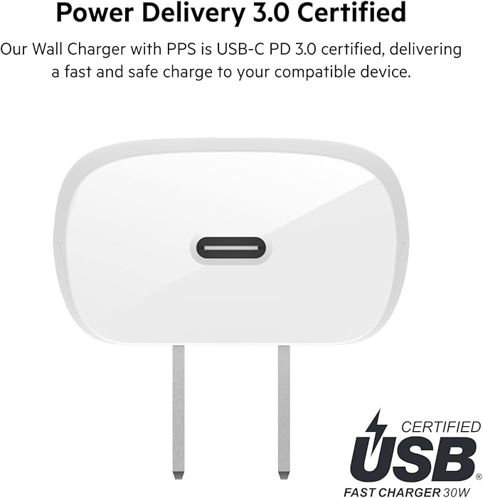 【USB-C Power Delivery 3.0認証】30W PPSウォールチャージャーは USB-CPD 3.0認証済みです。これは、互換性のあるデバイスに必要な仕様を満たしていることを意味します。つまり、安心して充電できます。