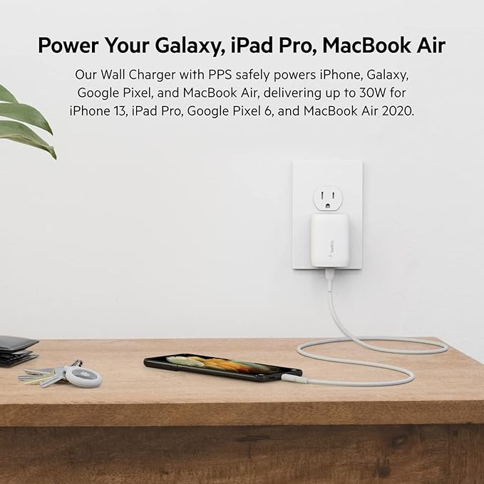 Belkin 充電器 USB-C 30W PD3.0急速充電 PPS対応 折りたたみ式プラグ iPhone 15 / MacBook Air/iPad/iPhone/Galaxy Note/Galaxy/Google Pixel対応 BOOST↑CHARGE WCA005dqWH