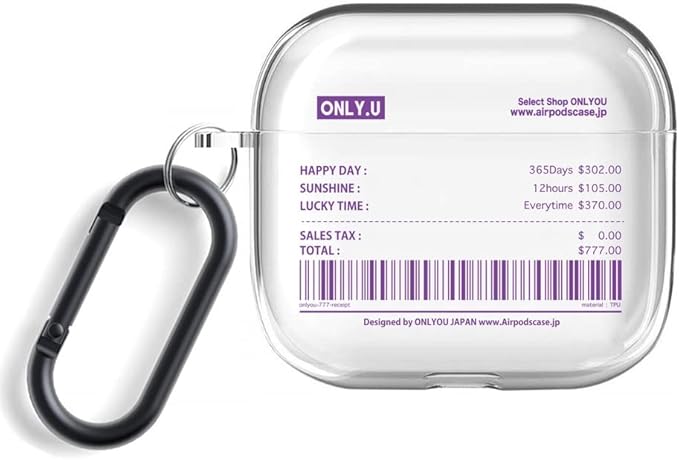 ONLYOU Airpods3 用 ケース おしゃれ 韓国 クリア 透明 TPU レシート バーコード デザイン エアーポッズ プロ カバー かわいい おしゃれ イヤホンケース カラビナ (AirPods(第3世代), パープル)