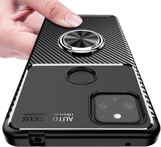 Google Pixel 5A ケース リング付き TPU 炭素繊維スマホケース 衝撃吸収 スタンド機能 薄型 360回転 車載ホルダー対応 散熱加工 指紋防止 スリム ソフト グーグル ピクセル5a 5g 携帯カバー 黒 KC8-20