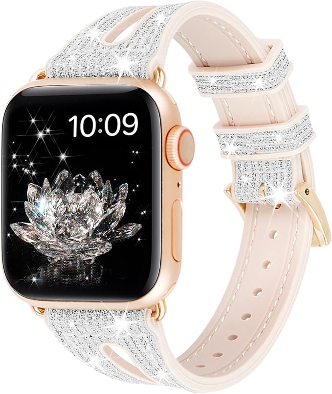 【Daturus】互換Apple Watch バンド シリコンバンド アップルウォッチバンド Ultra series 8/7/6/SE/5/4/3/2/1対応 腕時計ベルト キラキラ 女性向け カジュアル 柔らかい (ホワイト、42mm/44mm/45mm/49mm)