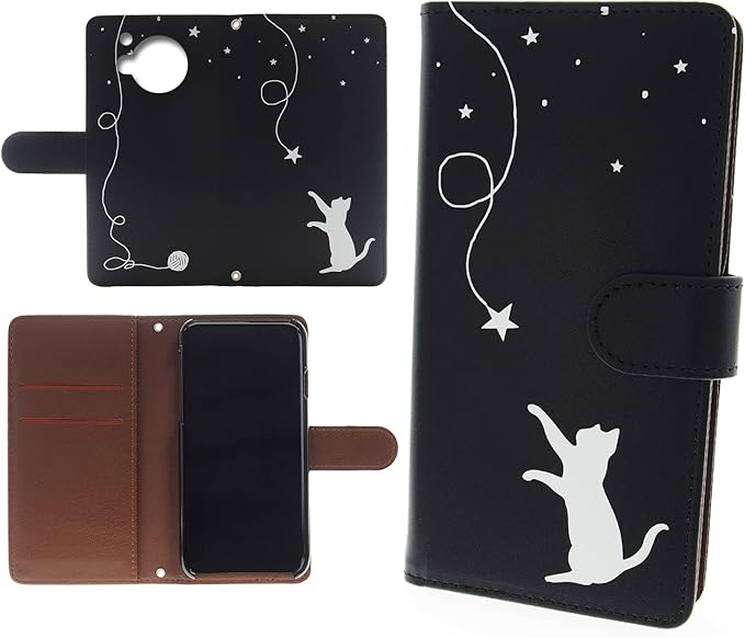 AQUOS R7 SH-52C ケース 手帳型 黒色 スマホケース ブラック レザー製 カバー カメラ穴搭載 ネコ シルエット 猫柄 シンプルスタイル アクオスR7 dcB-001