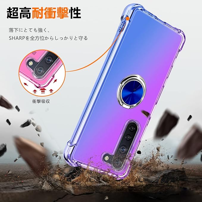 Aquos wish ケース リング付き クリア TPU グラデーション色 SHG06 携帯カバー 耐衝撃 透明 車載ホルダー対応 一体型 落下防止 防塵 変形防止 全面保護 アクオス wish カバー ピンク/緑 W-CSZH-28-04