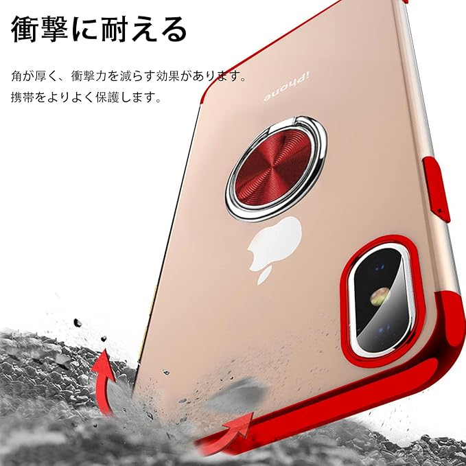 AQUOS R5G ケース リング クリア 透明 耐衝撃 AQUOS R5G SH-51A SHG01 カバー 専用 スリム ストラップホール付き スタンド機能 TPU 車載ホルダー対応 落下防止 防塵 薄型 軽量 一体型 変形防止 全面保護ケース アクオスR5G カバー 赤 W-DDYX-18-04