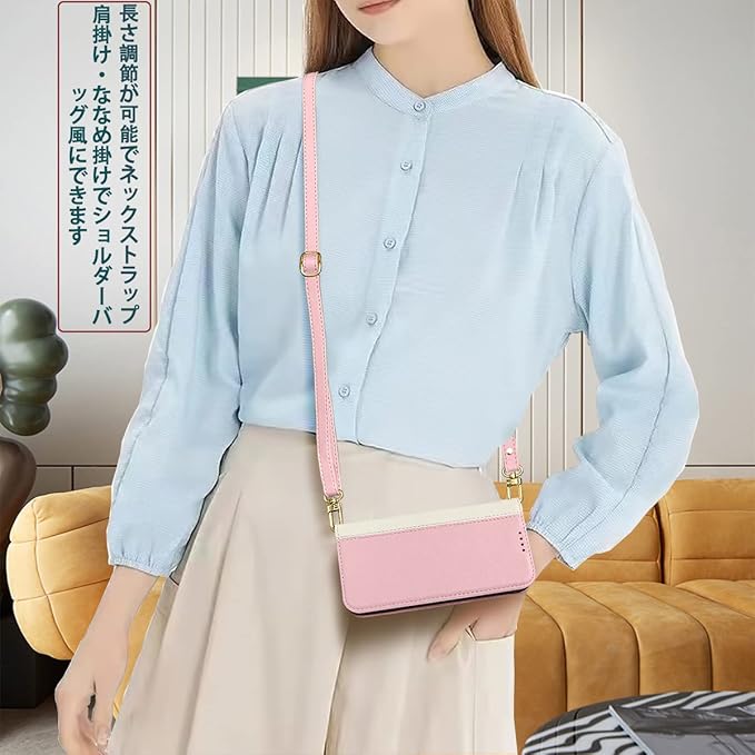 Xperia 1 IV ケース 手帳型 高質PUレザー Xperia 1 IV カバー SO-51C ケース 携帯カバー SOG06 ケース 肌感のよ 二色組合せ 耐衝撃 肩掛け 首かけ 斜めがけ ショルダー ケース 皮革 耐汚れ 内蔵マグネット開閉式 スマホケース おしゃれ カードポケット スタンド機能 人気 財布型(ピンク+ホワイト)