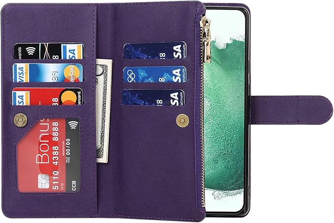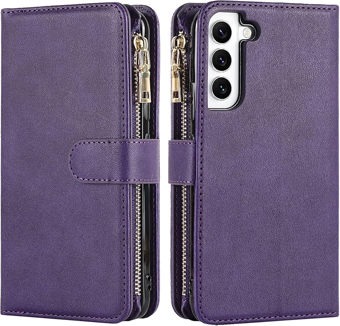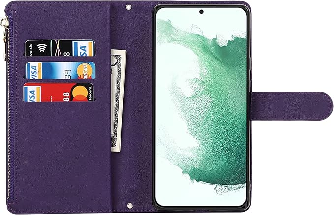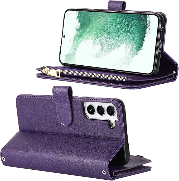 Pelanty for Galaxy S22 縄掛けケース手帳型 SC-51C SCG13 携帯カバー 肩掛け斜めがけ ショルダー 合成皮革+TPU マグネット Samsung S22 5G 財布型カバー ICカード お札入れ小銭入れ大容量 収納ポケット スタンド機能 サムスン ギャラクシー S22 ストラップ付き 落下防止 耐衝撃 全面保護(肩縄付き-パープル)