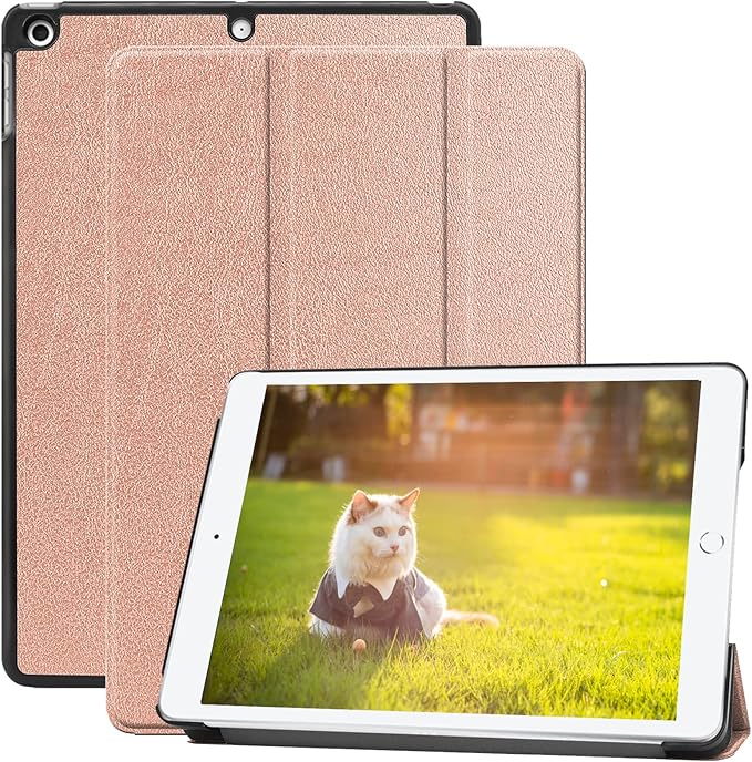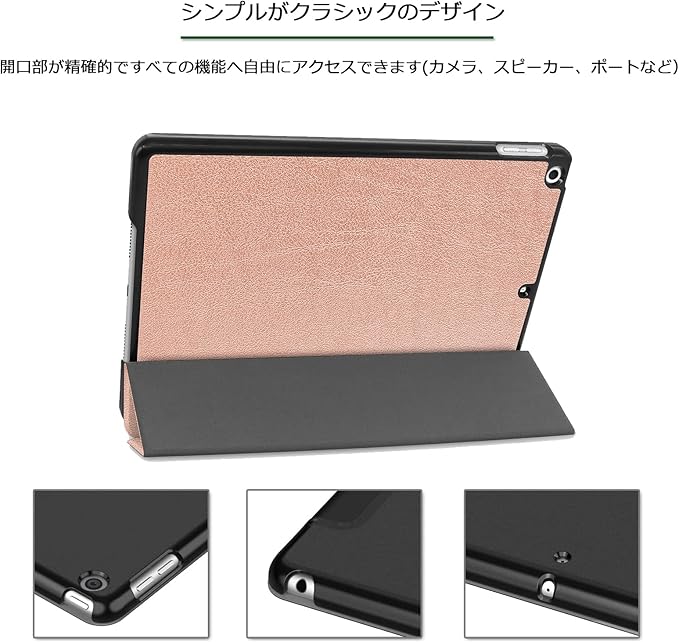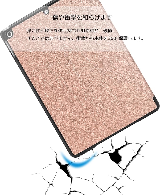 iPad ケース 10.2 第9/8/7世代 (2021/2020/2019年) 通用カバー三つ折り スタンド オートスリープ機能 アイパッド用タブレットケースPU+PC 軽量 傷防止 耐衝撃ipad カバー (バラゴールド, iPad 10.2 第9/8/7世代)
