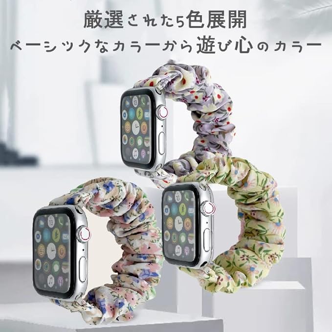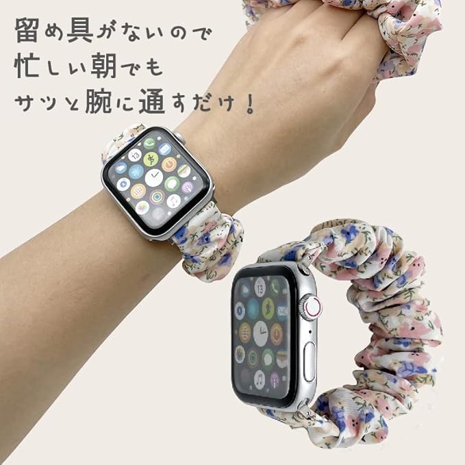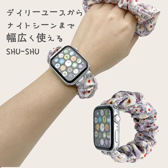 【花柄】HYUNGJ アップルウォッチ用 バンド シュシュ series10 46㎜ 42㎜ series9 series8 韓国風 おしゃれ ベルト apple watch用 series 7 6 5 4 SE スポーツ 可愛 レディース アクセサリー 38mm 40mm 41mm 44mm 45mm 49mm band フラワー 第九世代 第八世代 時計ベルト 時計バンド 替えベルト ベルト かわいい 替え