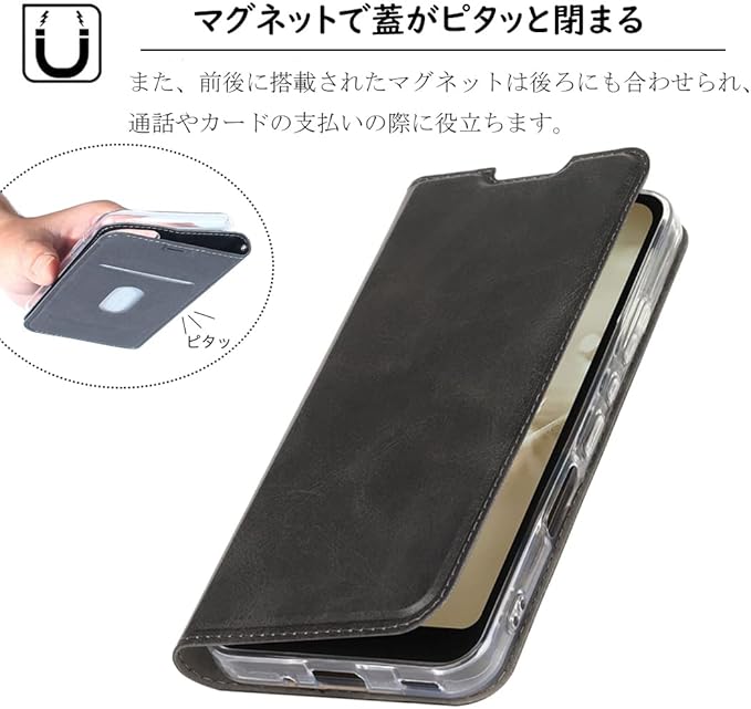 Elick AQUOS wish/AQUOS wish2 ケース 手帳型 超薄型 軽量 AQUOS wish SHG06 A104SH SH-M20 ケース 手帳型 AQUOS wish2 A204SH SH-51C ケース 手帳型 高級PUレザー マグネット式 ストラップ付き カード収納 スタンド機能 シャープ アクオス wish wish2 兼用 ケース カバー スマホケース ブラック