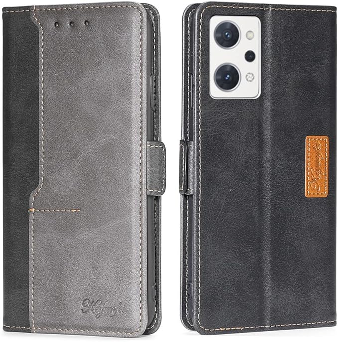 OPPO Reno9 A ケース 手帳型 OPPO Reno7 A ケース スタンド機能 カード収納 PUレザー 軽量 落下防止 衝撃吸収 全面保護 財布型 マグネット OPPO Reno9 A/Reno 7A 携帯カバー(ブラック+グレー)