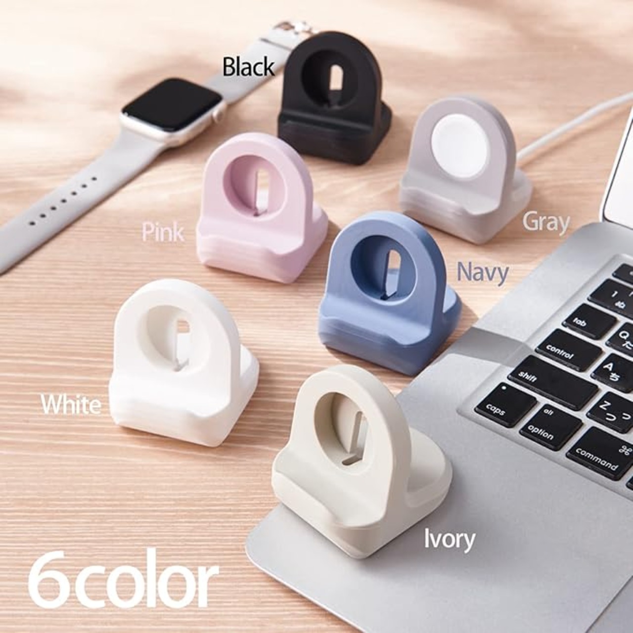 純正Apple Watch磁気充電ケーブルを装着・接続することで、Apple Watchの設置と充電ができるApple Watch用シリコンスタンドです。