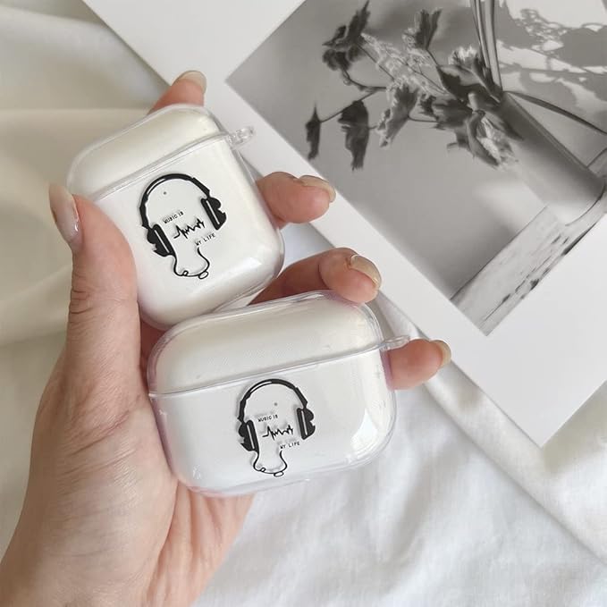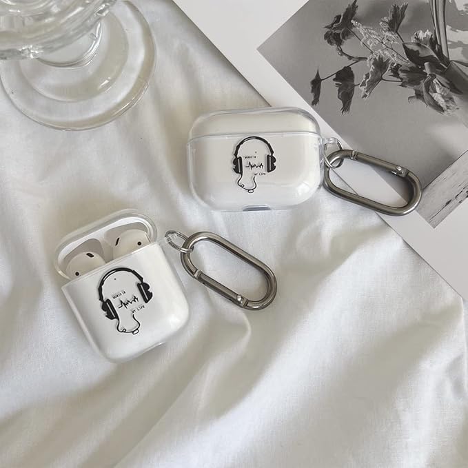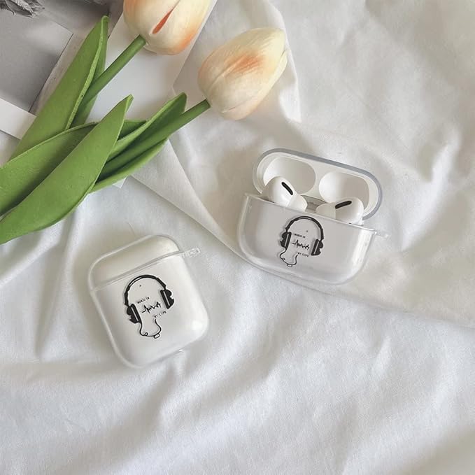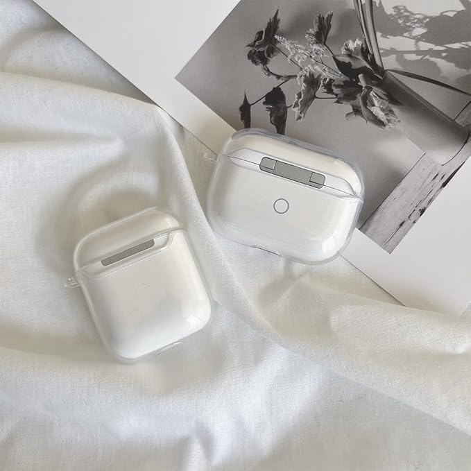 ONLYOU Airpods pro 用 ケース おしゃれ 韓国 Airpods pro2 ケース かわいい TPU ヘッドホン グラフィック シンプル クリア 透明 保護 エアーポッズ プロ カバー レディース メンズ イヤホンケース カラビナ (AirpodsPro(第1/2世代) クリア)