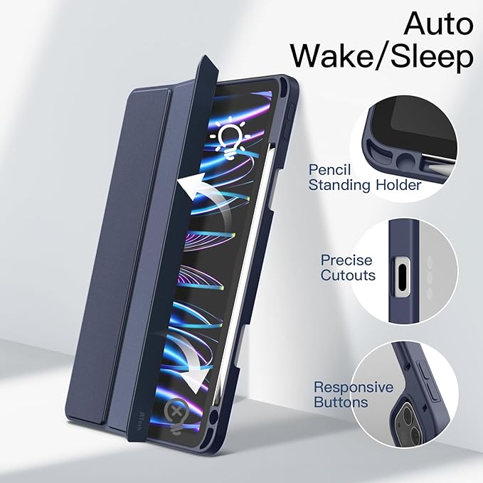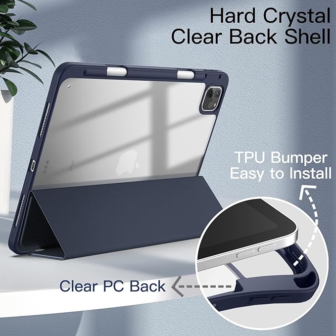 JETech iPad Pro 11 インチ ケース (2022/2021/2020/2018モデル) Pencil収納可能透明バックカバー 薄型 スタンド 衝撃吸収 タブレットカバー オートウェイク/スリープ機能 (ディープネイビー)