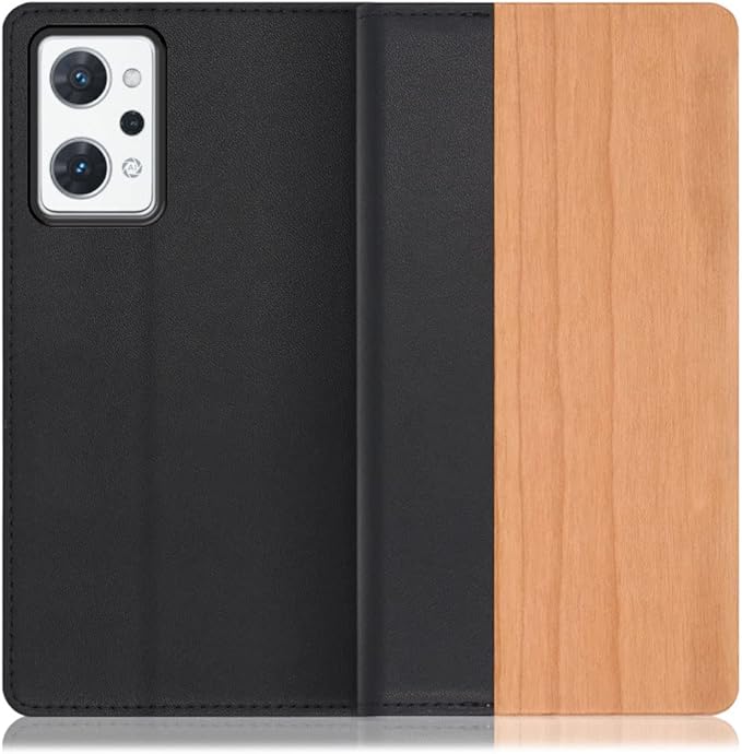 LOOF Nature Series OPPO Reno9 A / Reno7 A ケース 手帳型 カバー 本革 天然木 ベルト無し ウッド 木製 木 カード収納 カードポケット 本革 高級 スタンド機能 手帳型ケース スマホケース (桜)