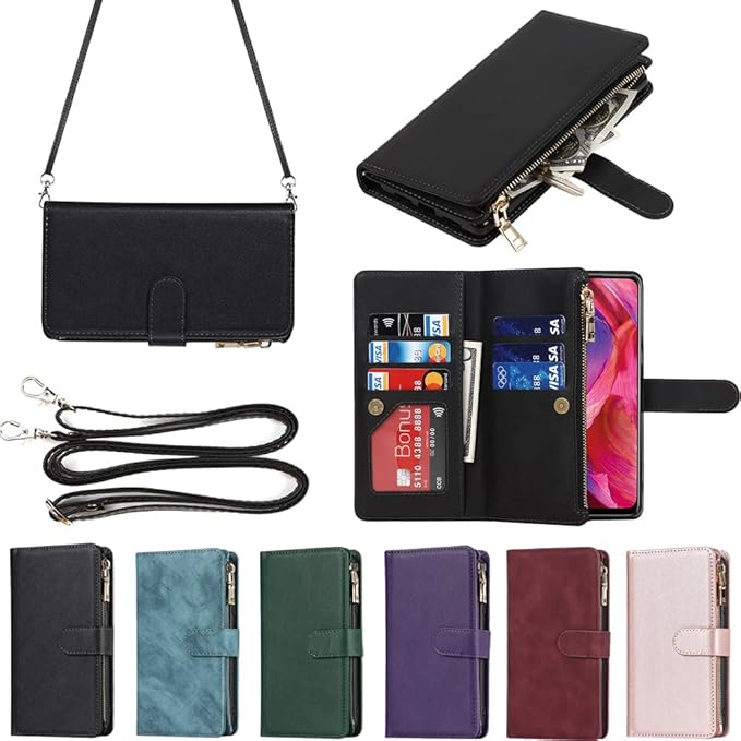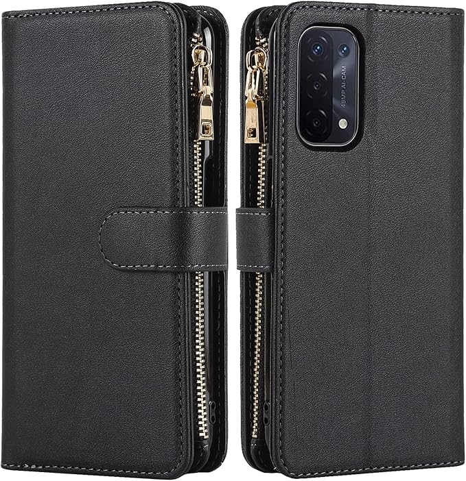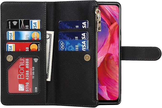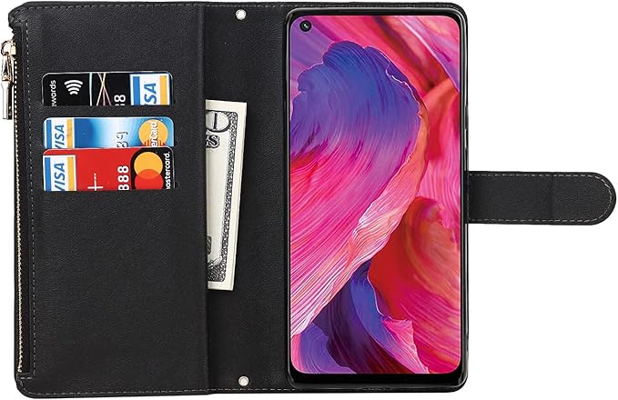 Eastwave for Oppo A54 5G ケース for OppoA54 5G 縄掛けケース 手帳型 財布型 ICカード コインポケット ストラップ付き カード 収納 小銭入れ ファスナーポケット付き PUレザー 6色 ブラック