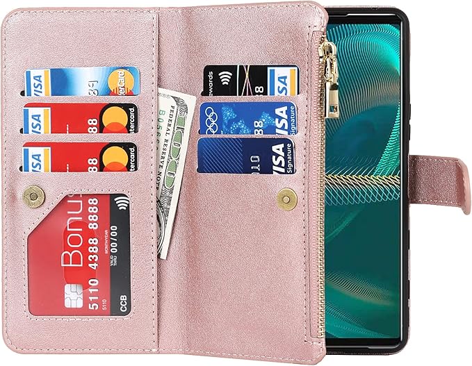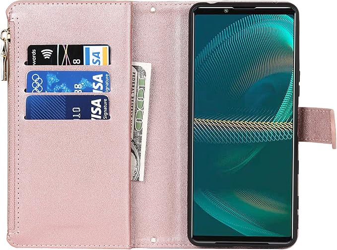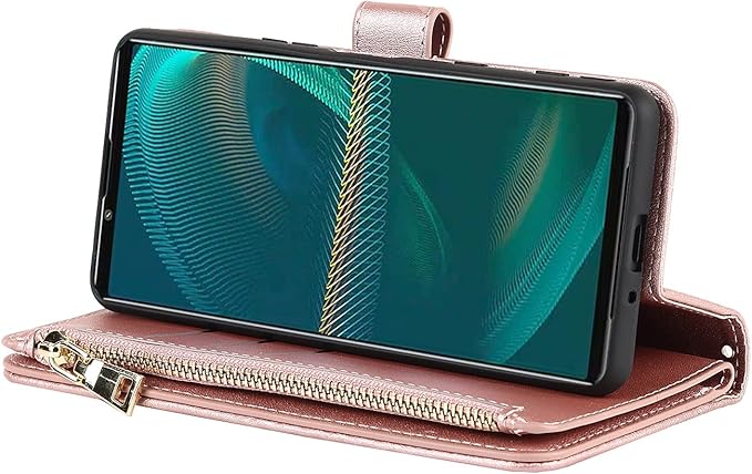 Eastwave Xperia 5 III ケース Sony エクスペリア 5iii SO-53B / SOG05 縄掛けケース 手帳型 財布型 ICカード コインポケット ストラップ付き カード 収納 小銭入れ ファスナーポケット付き PUレザー 6色 ピ