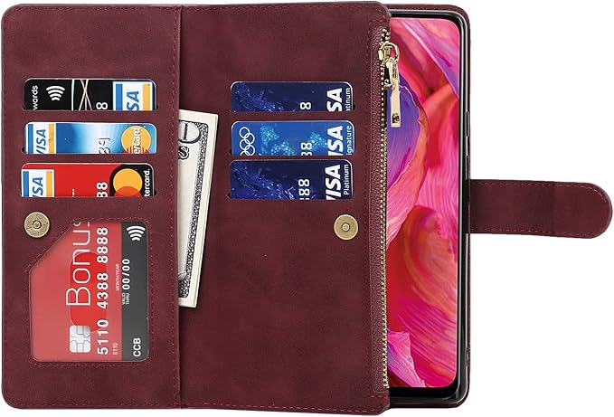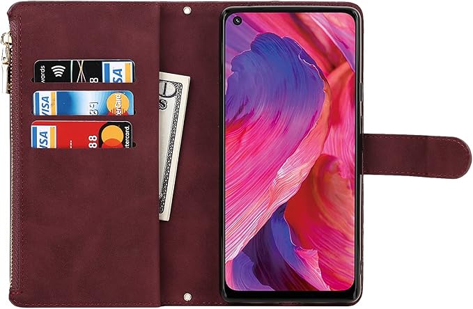 Eastwave for Oppo A54 5G ケース for OppoA54 5G 縄掛けケース 手帳型 財布型 ICカード コインポケット ストラップ付き カード 収納 小銭入れ ファスナーポケット付き PUレザー 6色 レッド