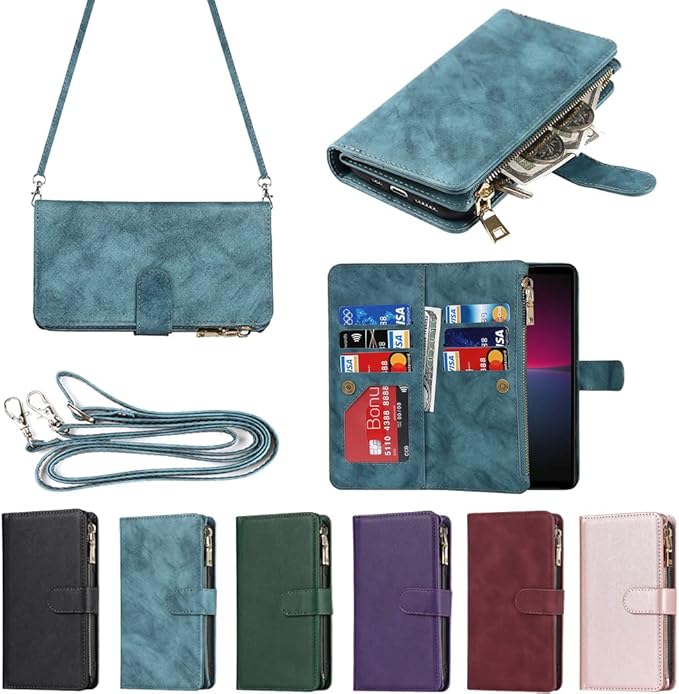 Eastwave for Xperia 10 IV ケース ソニー for Sony エクスペリア 10 IV SO-52C SOG07 縄掛けケース 手帳型 財布型 ICカード コインポケット ストラップ付き カード 収納 小銭入れ ファスナーポケット付き PUレザー 6色 ブルー