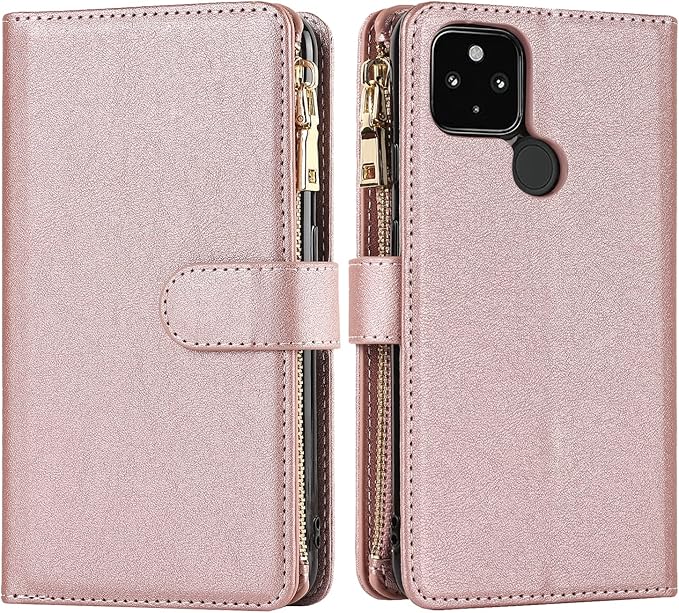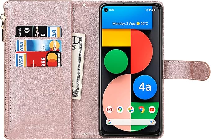 Eastwave Google Pixel 4A 5G ケース google pixel4a 5g 縄掛けケース 手帳型 財布型 ICカード コインポケット ストラップ付き カード 収納 小銭入れ ファスナーポケット付き PUレザー 6色ピンク