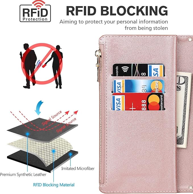 【2】財布機能8枚のカード、1枚の写真、1枚の紙幣のビット、カードや現金を安全に保管します。カード、建物、地下鉄またはその他の交通機関へのアクセスのために定期的にカードをスワイプする人に最適です、加えて精巧なファスナーデザイン :もっと安心してカードや現金を携帯のケースに入れて、安全で便利です。
