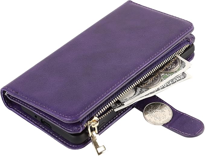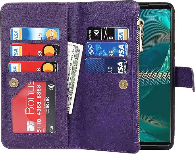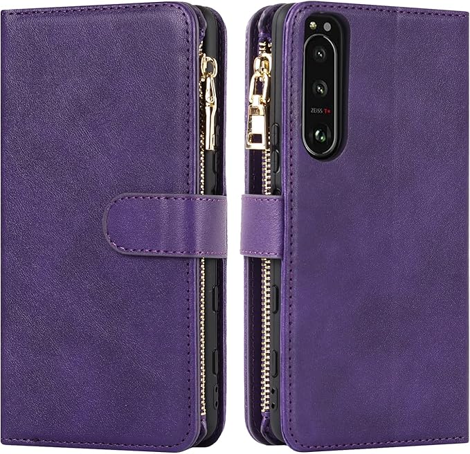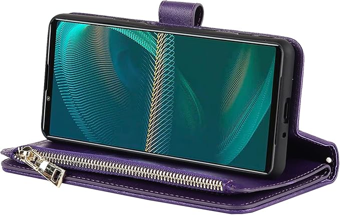 Eastwave for Xperia 5 III ケース for Sony エクスペリア 5iii SO-53B / SOG05 縄掛けケース 手帳型 財布型 ICカード コインポケット ストラップ付き カード 収納 小銭入れ ファスナーポケット付き PUレザー 6色 パープル