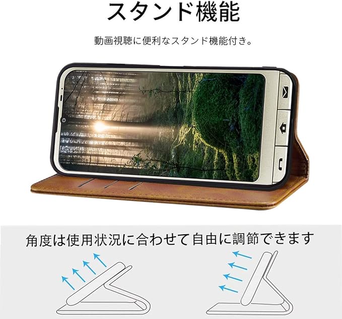 シンプルスマホ6 ケース 手帳型 Simple Sumaho 6 ケース 手帳型 A201SH ケース 高質PUレザー 耐衝撃 内蔵マグネット開閉式 ベルトなし スマホケース おしゃれ カードポケット スタンド機能 便利 スプラット同梱 携帯ケース (ブラウン)