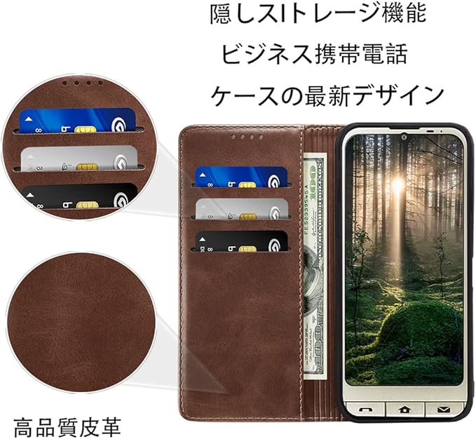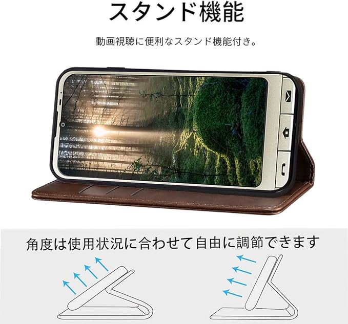 シンプルスマホ6 ケース 手帳型 Simple Sumaho 6 ケース 手帳型 A201SH ケース 高質PUレザー 耐衝撃 内蔵マグネット開閉式 ベルトなし スマホケース おしゃれ カードポケット スタンド機能 便利 スプラット同梱 携帯ケース (ダークブラウン)
