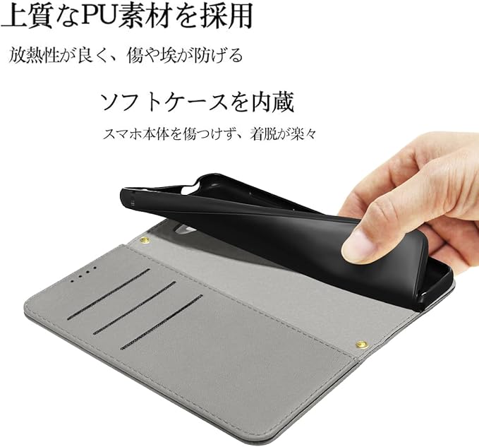 【素材】: (1)外:厳選されたレトロPU革で丁寧な縫製プロセスを施し、手触りが優しくて、落ち着いた色付けで汚れにくくて、使い勝手もとても。 (2)内:柔軟性が良いTPU材質のスマホホルダーです、着脱が容易,本体へ360°保護を提供することになります。放熱性が良、滑りにくく、指紋、油分などもつきにくく。ひとつひとつ職人の手で仕上げました。より良い素材と選ばれた職人が出会うことにより、最高級の革製品が完成します。