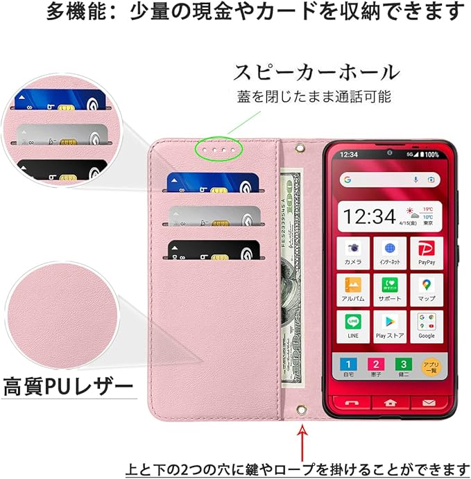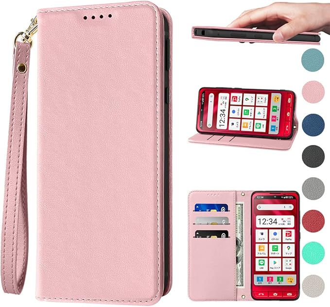 シンプルスマホ6 ケース 手帳型 高質PUレザー シンプルスマホ6 カバー Simple Sumaho 6 ケース A201SH 手帳 ケース 耐衝撃 内蔵マグネット開閉式 ベルトなし スマホケース おしゃれ カードポケット スタンド機能 便利 スプラット同梱 携帯ケース ピンク