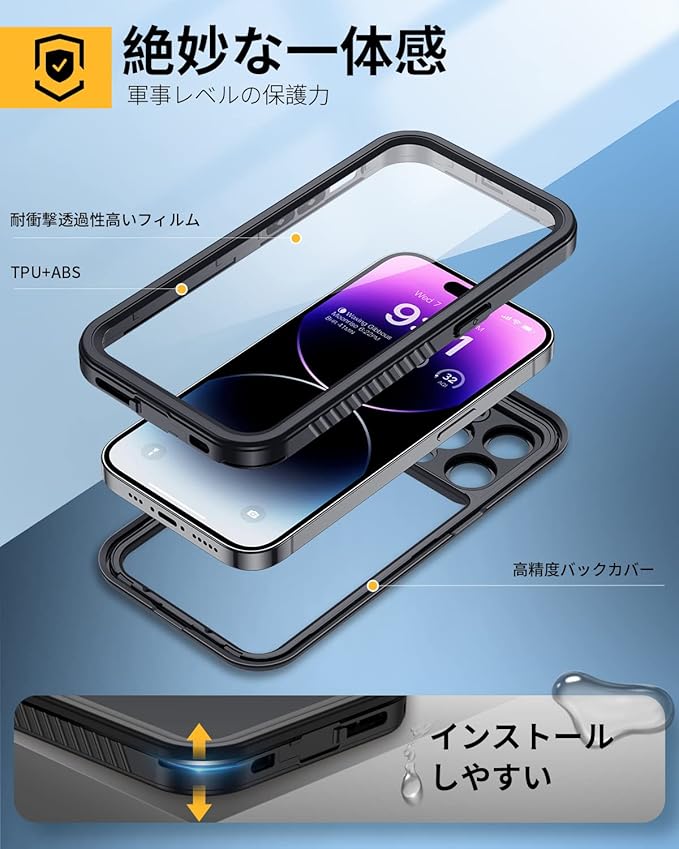 【IP68防水&多保護】防水国際保護等級IP68認定を獲得水没しても内部への水の侵入を完全にガードできます。 雨や、雪、泥や砂などから保護できますご注意:ご使用の前に必ず携帯の代わりに一枚の紙をケースに入れて、iPhone 14 ProMax 防水ケースは最大水深2mで30分間の防水試験を行ってください。もし、水が浸入した場合こちらに連絡。返金&交換を対応します。
