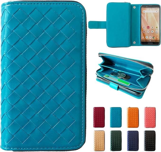 シンプルスマホ7 A404SH シンプルスマホ6 A201SH 用 手帳型 ケース カバー A404SHケース A201SHケース シンプルスマホ 6 7 手帳 手帳型ケース 手帳型カバー 財布付き編み込み ターコイズ