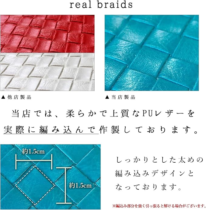 【シンプルスマホ6 Softbank A201SH SHARP 専用 手帳型ケース】柔らかで上質なPUレザーを実際に編み込んで作製しております。しっかりとした編み込みデザインで長くお使い頂けます