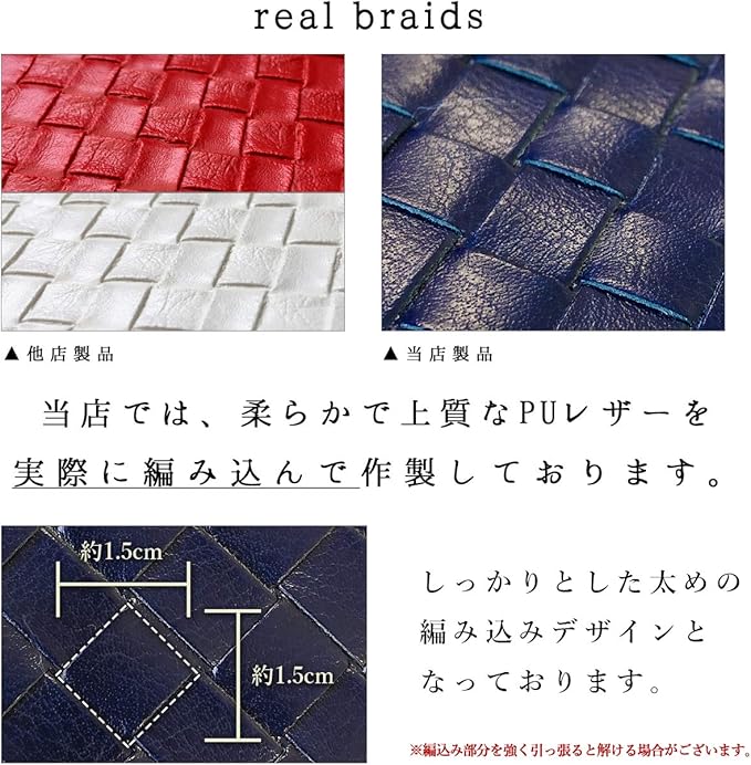 【シンプルスマホ6 Softbank A201SH SHARP 専用 手帳型ケース】柔らかで上質なPUレザーを実際に編み込んで作製しております。しっかりとした編み込みデザインで長くお使い頂けます