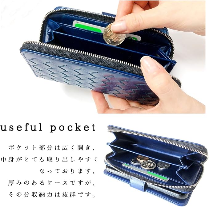 財布部分は大きめの厚みとなる分、様々な用途で仕分けられるような仕切りとカードポケットがあり、小銭・カード等が収納可能です。ちょっとしたお出かけに最適