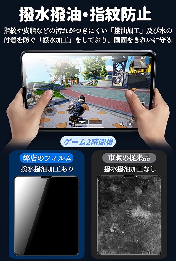 ?フィルム表面の指紋防止加工により指紋や汚れが残りにくくなります。フィルム透過率は高くて、高品質画面を実現しました。動画や写真などを高画質のま