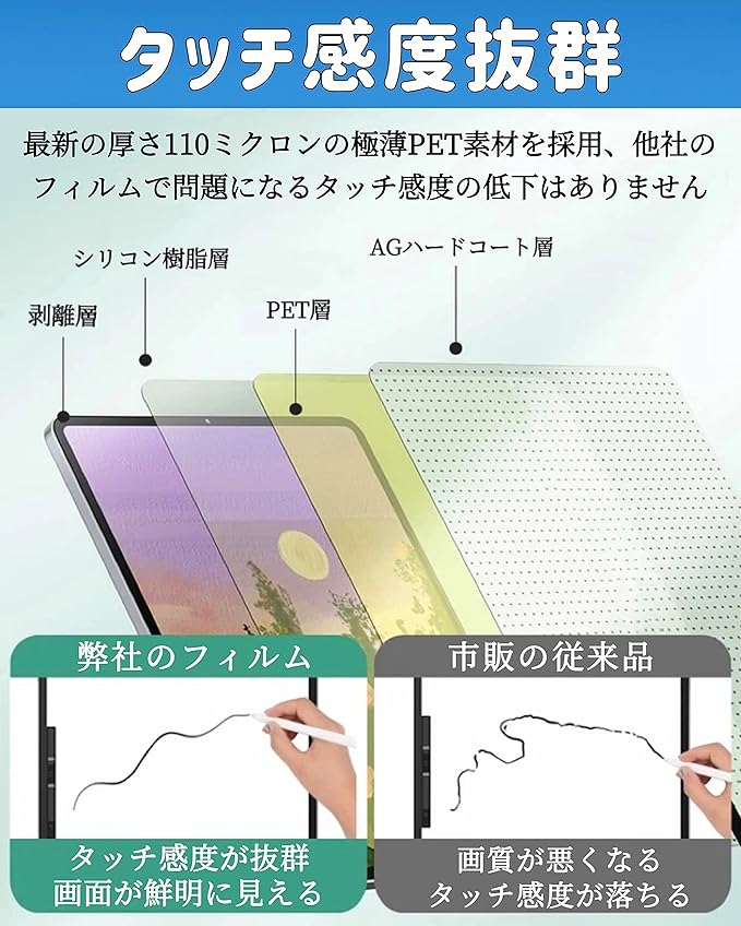 ?ペーパーライクフィルムはフィルム表面に微細な凹凸処理を施すことで、本物の紙に鉛筆で描いているような描き心地で、手帳、絵画、メモ、レポートなどの文字や絵を描くことができます。