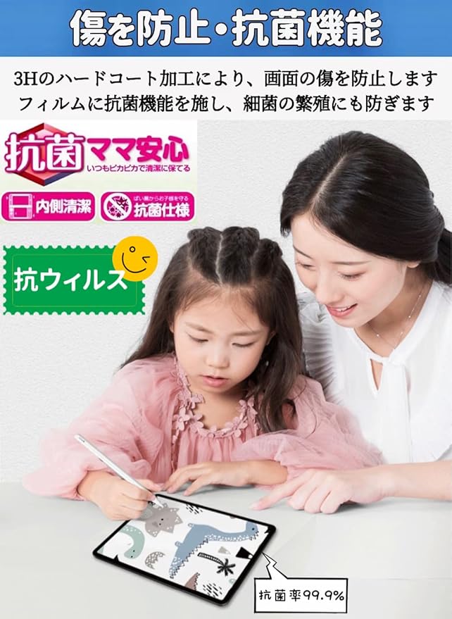 ?フィルム表面の指紋防止加工により指紋や汚れが残りにくくなります。鉛筆硬度3Hのハードコート加工により、ホコリ、指紋、キズなどから、液晶画面を守ります