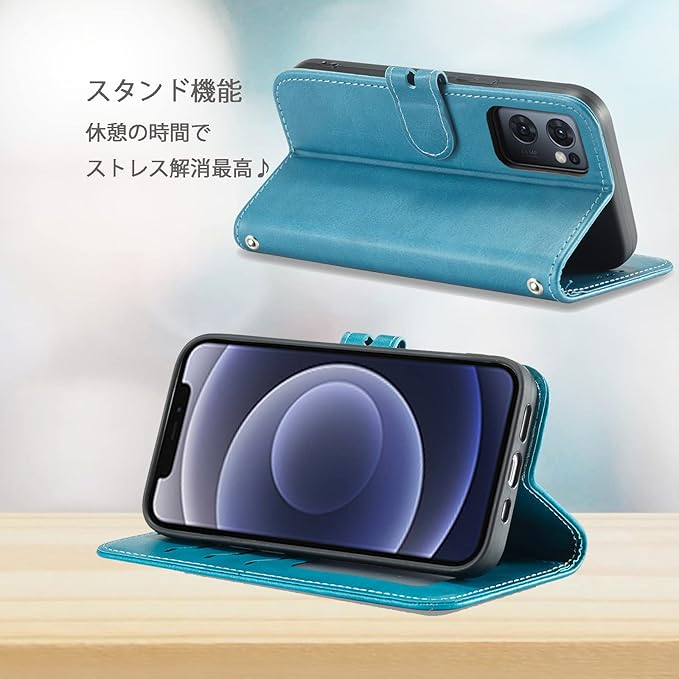 OPPO Reno9 A ケース OPPO Reno7 Aケース opg04手帳ケース oppo reno7 a手帳型ケース reno7a カバー スマホケース case oppo reno9a 携帯ケース reno9a手帳ケース ストラップ付き ベルトマグネット スタンド機能 かわいい(OPPO Reno7 A/Reno9 A対応 6.4inch) ターコイズ