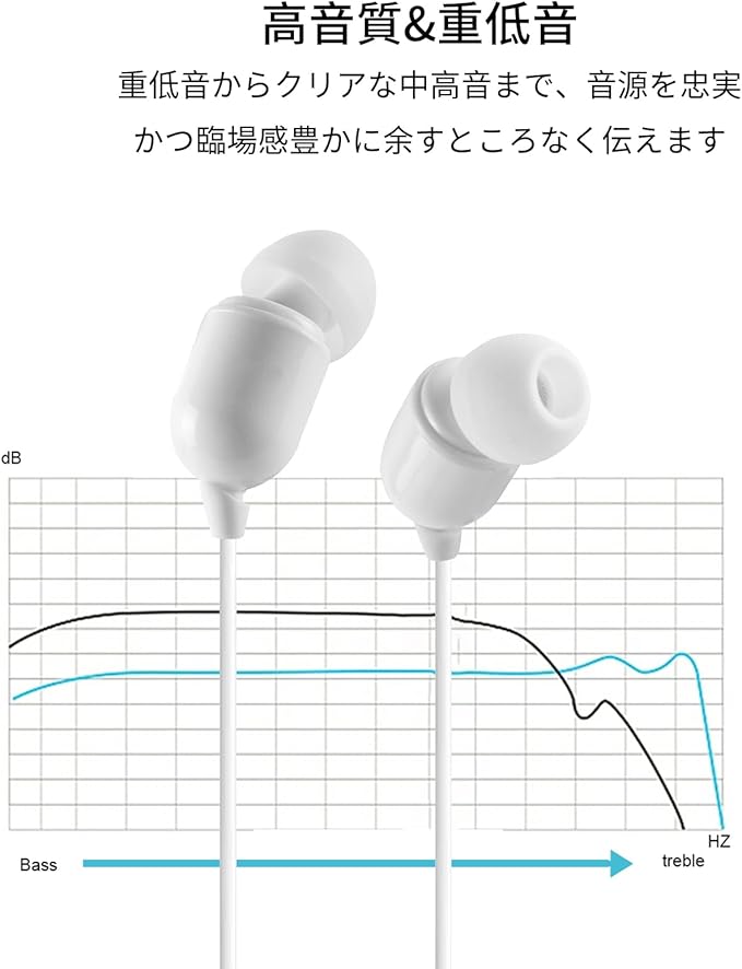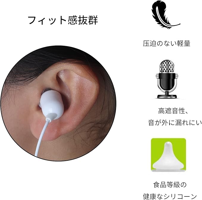 【カナル型】耳に密着するカナル型イヤホン、遮音効果強く、イヤホンからの音に集中できます。高品質素材で作り上げ、長時間着用しても快適に装着ができます。