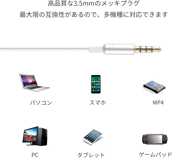 【通話対応】3.5mmの4極プラグにはマイクとリモコンを搭載しており、スマホをポケットから取り出さなくても簡単に電話に出ることができます。(*音が聞こえない時は、まずケーブルにあるリモコンをスライドして調整してください。)