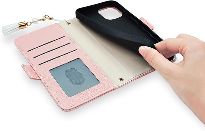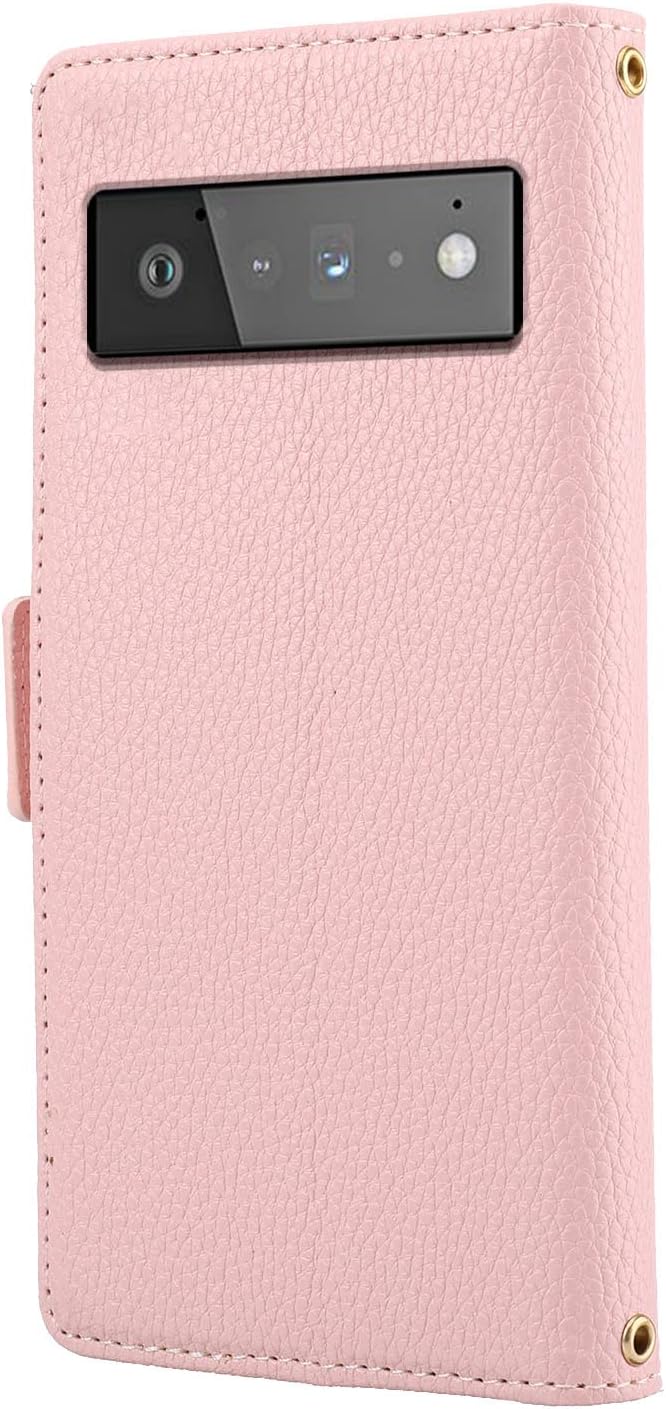 対応機種:Google Pixel 6a ケース対応。高級感が溢れるライチ模様の合皮レザーを使用し、爽やかな三色の無地生地で組み合わせて発色が美しいスマホケースです。キラキラの真珠チャームも付いて派手すぎず、地味である手帳は可愛さが輝きます。