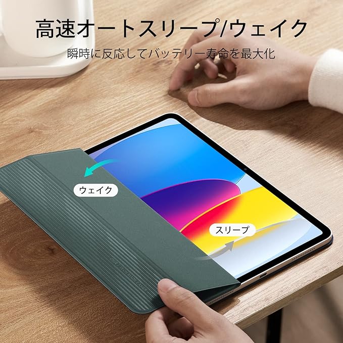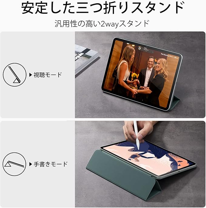 ESR iPad 11世代 ケース A16 (11インチ、2025モデル) iPad 第10世代 (10.9インチ、2022モデル)専用 強力マグネット吸着式 スリムな三つ折りスタンドケース 自動ウェイク/スリープ耐 久性保護 軽量 シルクのよう滑らか Reboundシリーズ グリーン