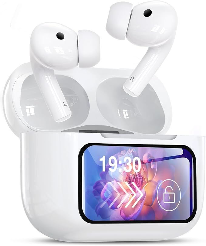 イヤホン bluetooth ワイヤレスイヤホン【業界初多機能タッチスクリーン・ANC搭載】ブルートゥースイヤホン ノイズキャンセリング AIFENG bluetooth5.4 蓋をあけたら接続 最大32時間再生 ぶるーとぅーすイヤホン Hi-Fi ハンズフリー通話 Type-C充電 小型/軽量 片耳モード iOS/Android (ホワイト)