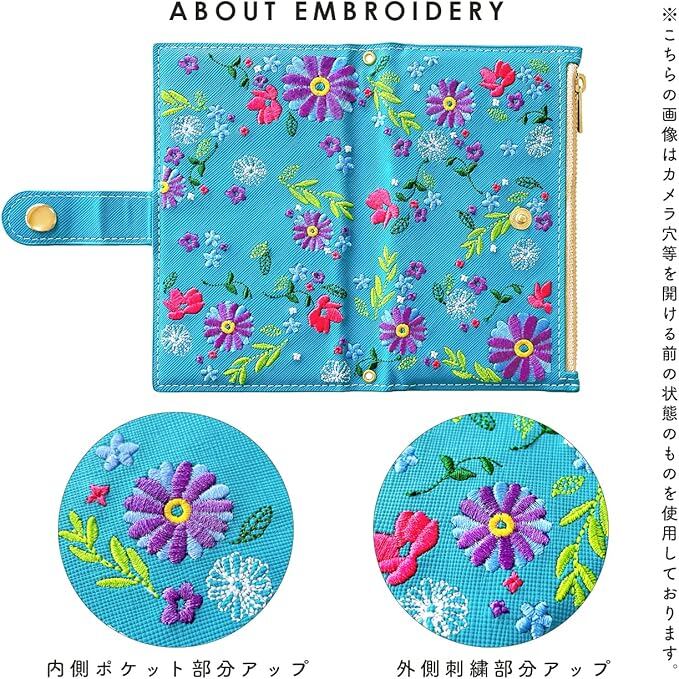 AQUOS R7 SH-52C A202SH 用 ケース カバー 手帳型 手帳型ケース SH52C SH-52Cケース SH-52Cカバー A202SHケース A202SHカバー SH52Cケース SH52Cカバー スマホケース スマホカバー おしゃれ花刺繍 ターコイズ