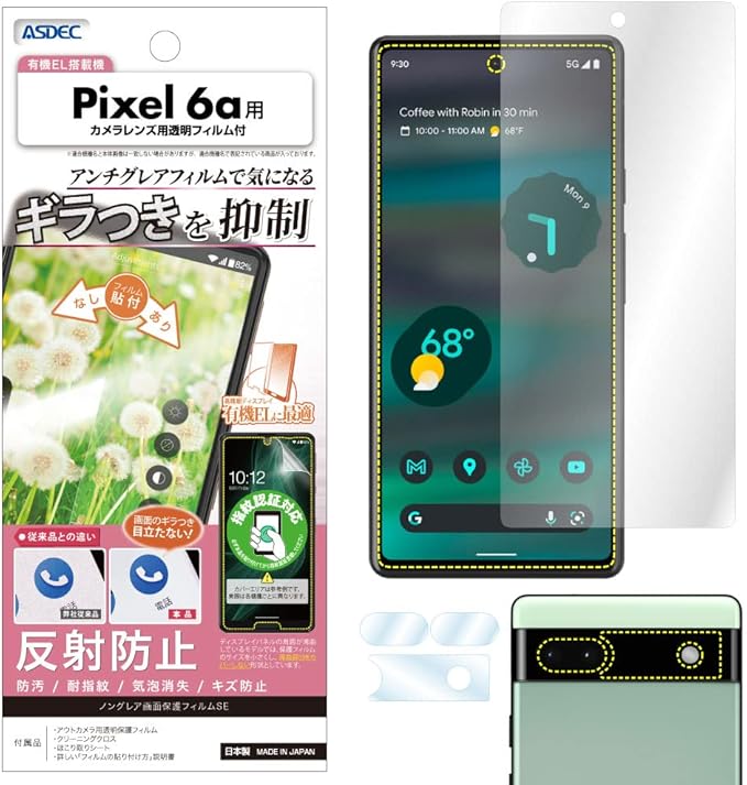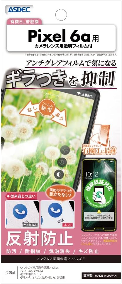 ASDEC Google Pixel 6a フィルム カメラフィルム 画面内指紋認証対応 反射防止 アンチグレア スペシャルエディション 日本製 防指紋 気泡消失 映込防止 NSE-GPX6A / ピクセル6エー 保護フィルム ノングレアフィルムSE