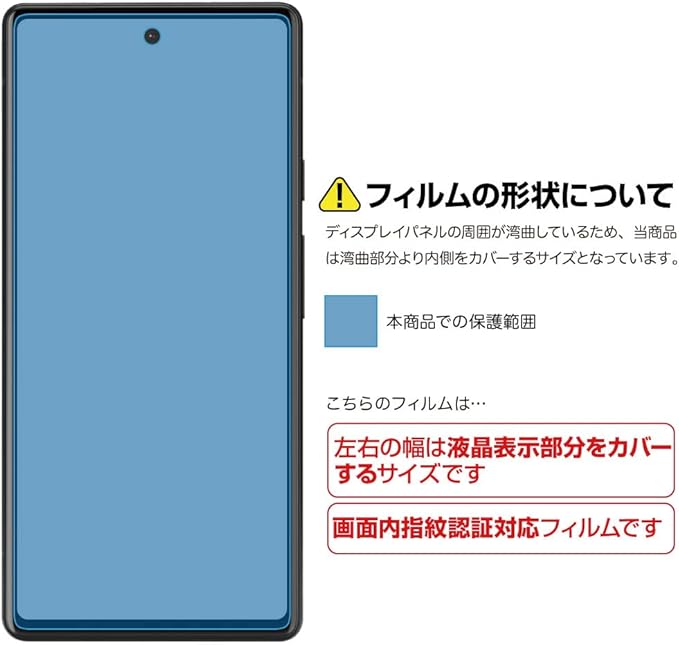 ※左右の幅は液晶表示部分とほぼ同じです(ディスプレイの周囲が湾曲している為、フィルムサイズを小さくしています)。