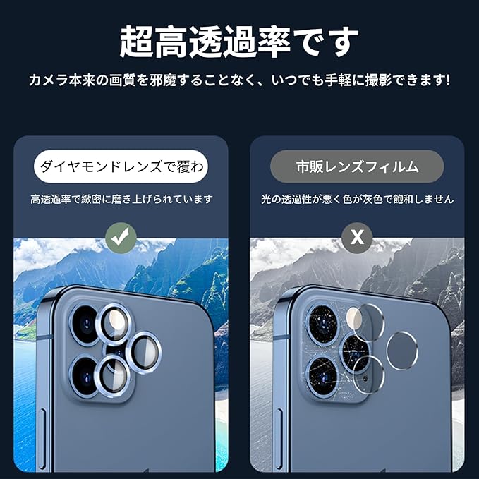 【ケースに干渉しない】iPhone 14 / iPhone14 plusのスタイルさをデザインに、アルミ合金製のカメラリングの融合で、カメラレンズの光沢をさらに醸し出し、より一層の高級感が溢れる。フィルム貼付後に、カメラレ