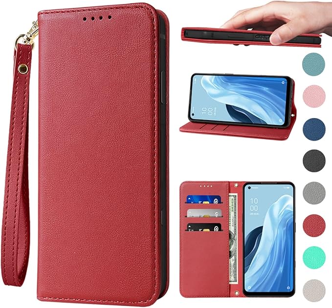 OPPO Reno7 A/Reno9 A ケース 手帳型 高質レザー OPG04 ケース Reno7A Reno9A スマホケース A201OP ケース CPH2353 ケース OPPO Reno9A カバー オッポリノ7a/9a 携帯カバー 耐衝撃 皮革 内蔵マグネット開閉式 ベルトなし スマホケース おしゃれ カードポケット スタンド機能 便利 スプラット同梱 携帯ケース レッド